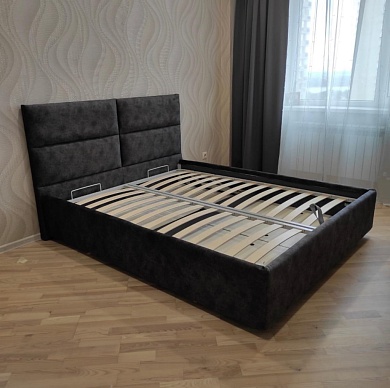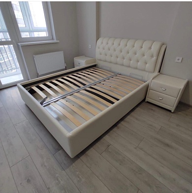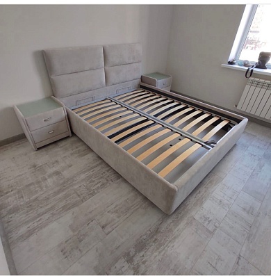 Возможна установка подъемного механизма со вместительным бельевым ящиком. Дно бельевого ящика легко сдвигается для обеспечения уборки под кроватью.